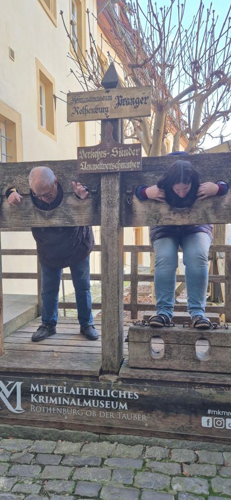 Ein Höhepunkt der Woche war der Ausflug nach Rothenburg ob der Tauber. Dort besuchten wir das Kriminalmuseum, das mit seinen Ausstellungen zur Rechtsprechung im Mittelalter für großes Staunen sorgte. Anschließend erkundeten wir die berühmte Altstadt von Rothenburg, deren gut erhaltene Fachwerkhäuser und Stadtmauern einen lebendigen Eindruck vom mittelalterlichen Stadtleben vermittelten, aber auch die verschiedenen weihnachtlichen Geschäfte waren einen Besuch wert. Ein weiterer Ausflug führte uns nach Abenberg, wo die Burg Abenberg sowie das dortige Museum besichtigt wurden. Auch hier stand das Thema Mittelalter im Mittelpunkt und wurde durch eine Burgrallye, praktische Versuche und verschiedene Erklärungen vor Ort veranschaulicht.