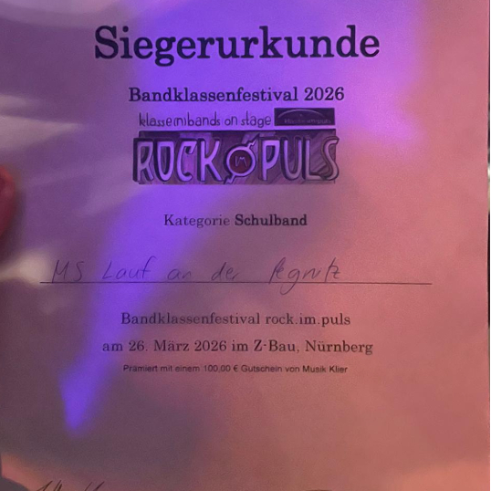 Am vorletzten Schultag vor den Osterferien fand in Nürnberg im Z-Bau das Bandklassenfestival rock.im.puls statt, bei dem sich morgens Nachwuchsmusiker der 5. Klassen, gefolgt von Bandklassen der 6. Jahrgangsstufen präsentieren.